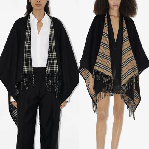 버버리 리버시블 체크 울 캐시미어 케이프 블랙 ~2Color~