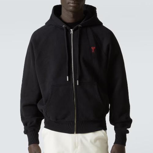 아미 하트 로고 코튼 후드집업 블랙