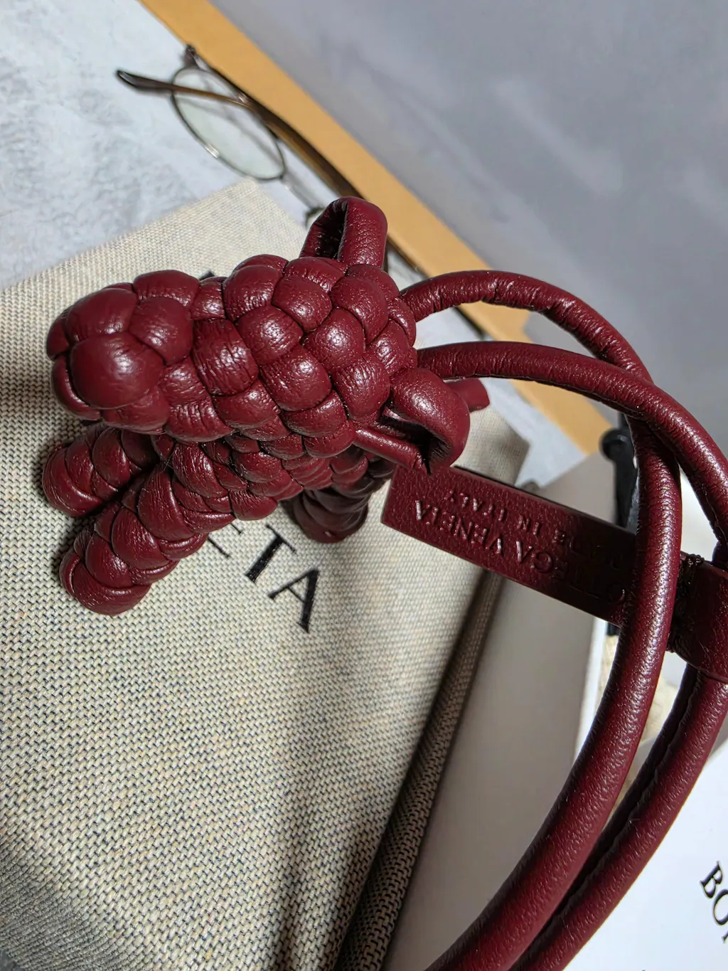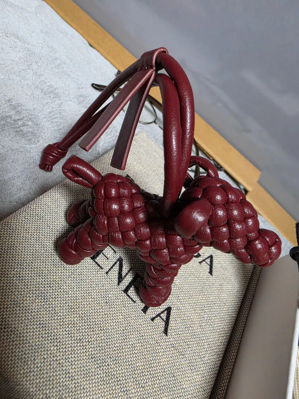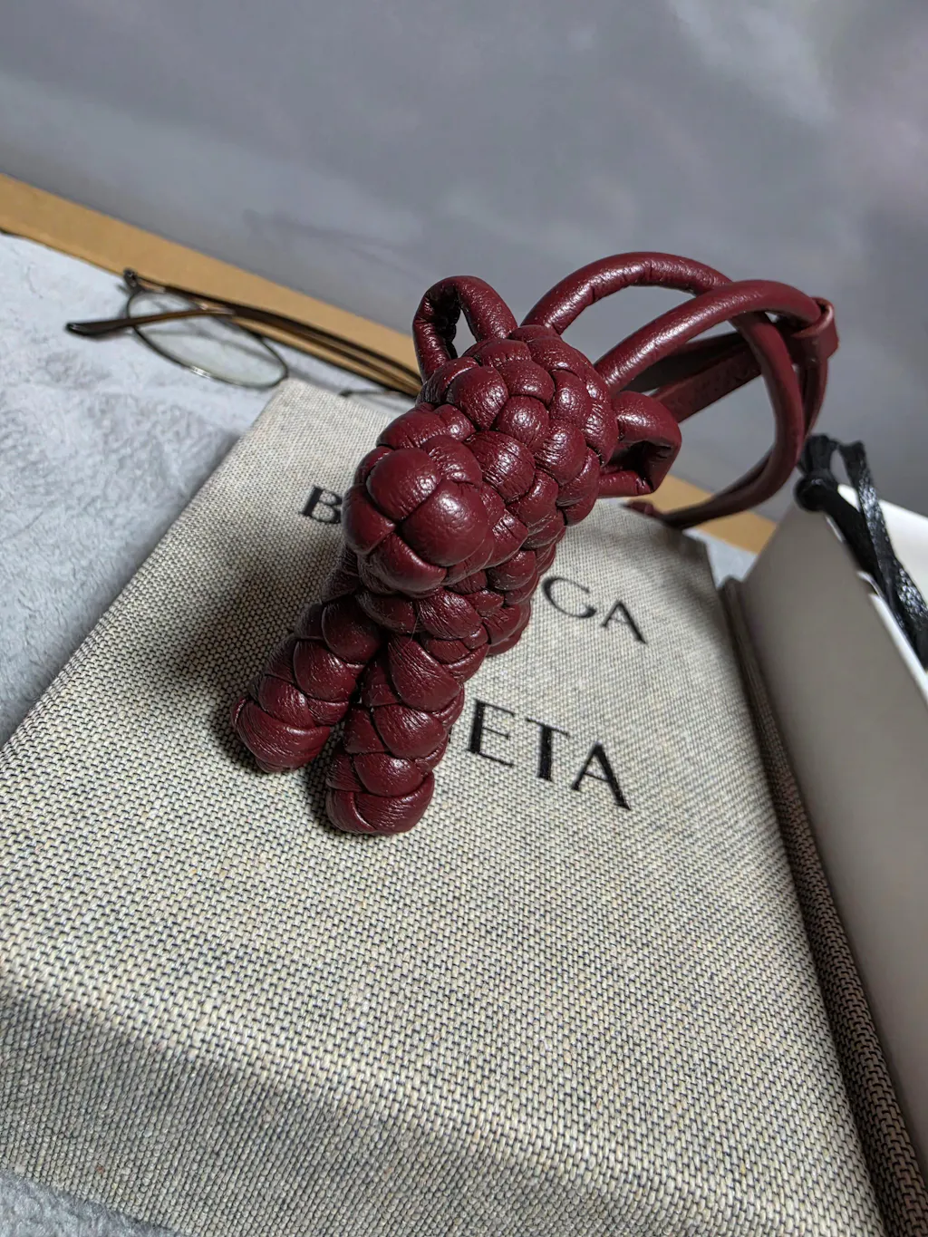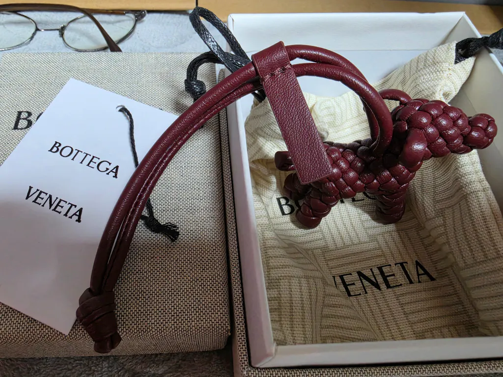 보테가 특유의 인트레치오 짜임이 정교하게 들어가서 고급스러우면서도 강아지 모양이라 위트가 느껴집니다.