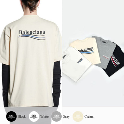 발렌시아가 웨이브 자수 로고 반팔티셔츠