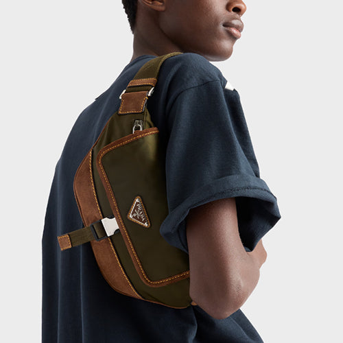 프라다 리나일론 및 스웨이드 벨트백